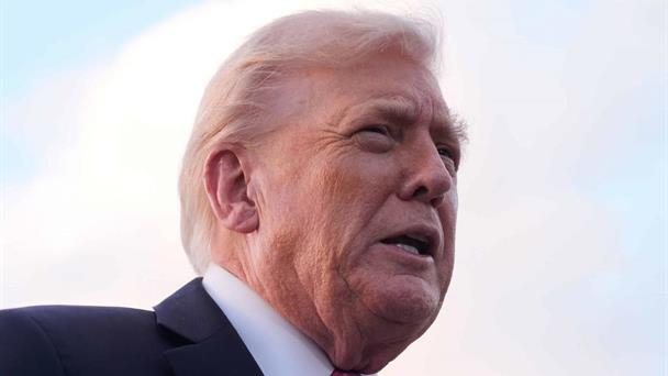 El presidente Donald Trump habla con periodistas tras su llegada en el Air Force One, el viernes 17 de octubre de 2025, al Aeropuerto Internacional de Palm Beach en West Palm Beach, Florida.