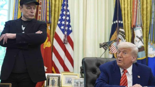 El presidente de Estados Unidos, Donald Trump (derecha), habla durante una conferencia de prensa con Elon Musk en la Oficina Oval de la Casa Blanca.