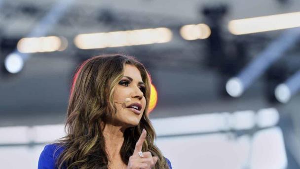 La secretaria de Seguridad Nacional, Kristi Noem, pronuncia un discurso durante la Conferencia de Acción Política Conservadora.