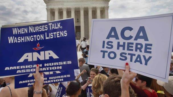 Partidarios de la Ley de Cuidado de Salud Asequible, comúnmente llamada "Obamacare" o ACA, por sus siglas en inglés, durante una protesta.