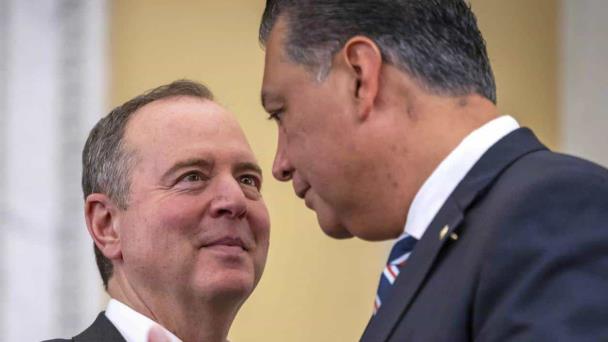 Los senadores demócratas por California, Adam Schiff y Alex Padilla, en el Congreso en Washington.