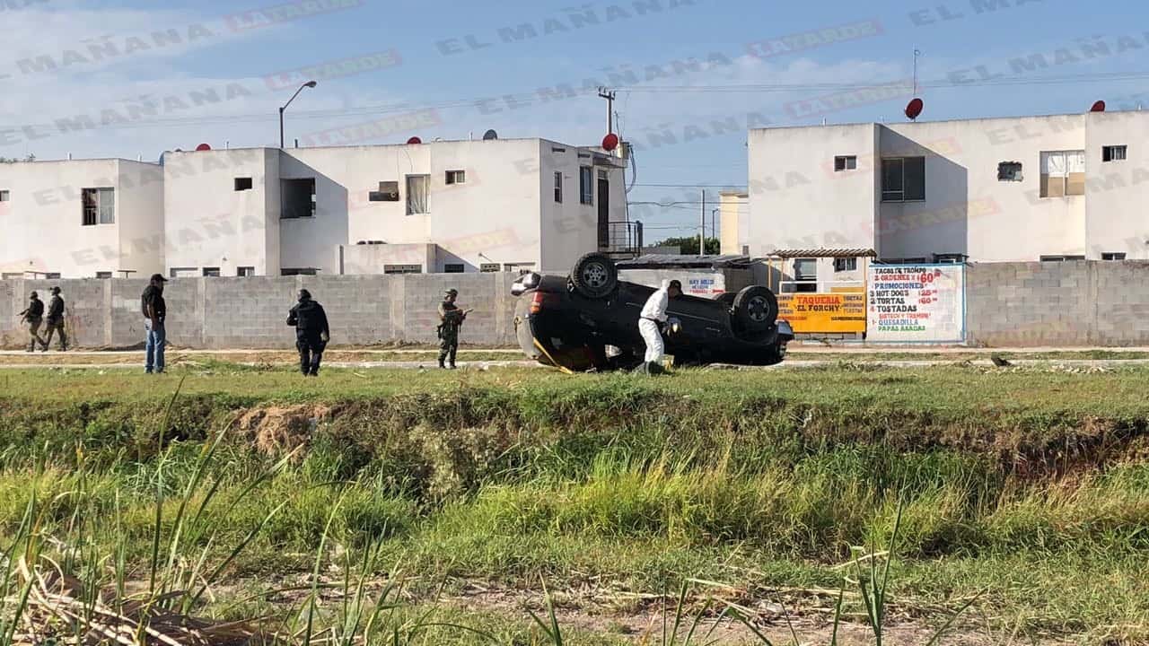 Dos camionetas aseguradas; una chocada y otra volcada, armas y una persona detenida y al parecer herida fue el saldo de un enfrentamiento entre sujetos armados y elementos del Ejército Mexicano.