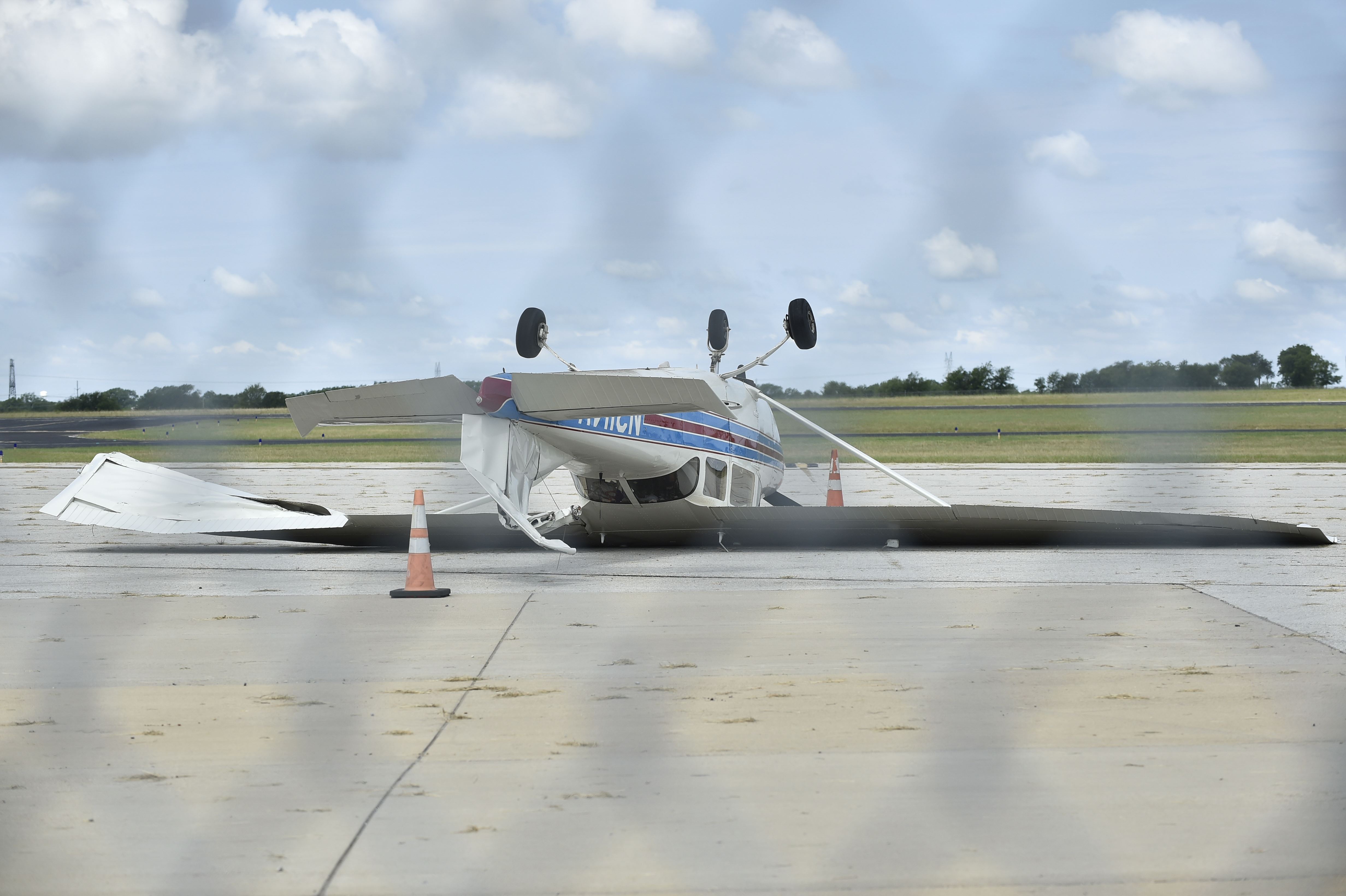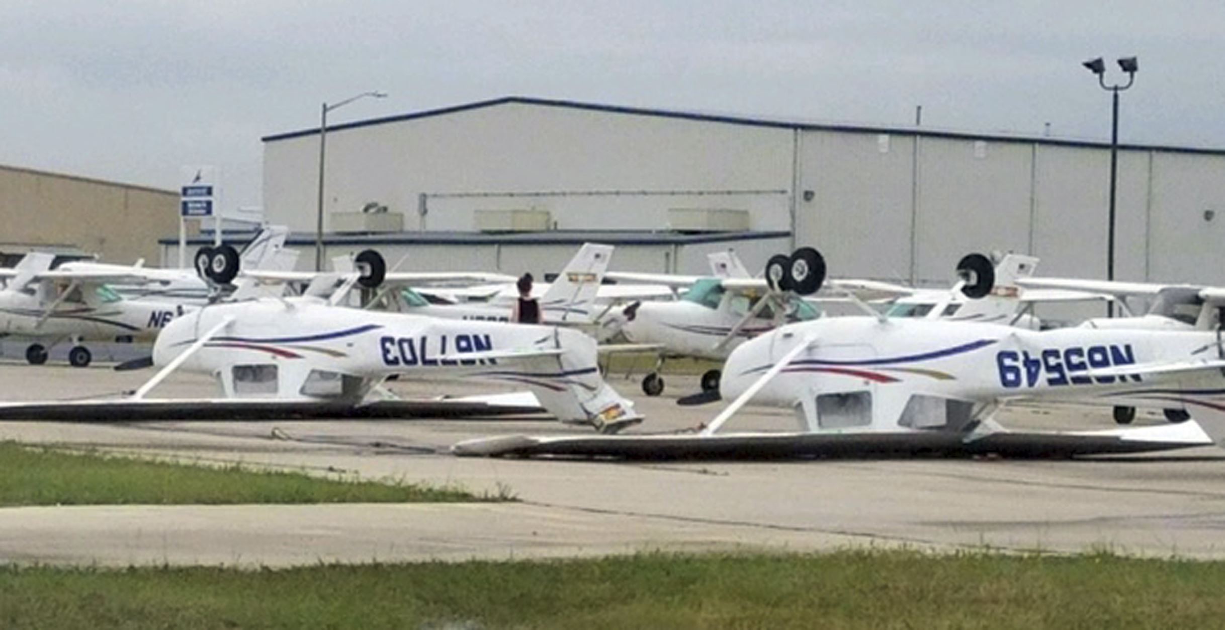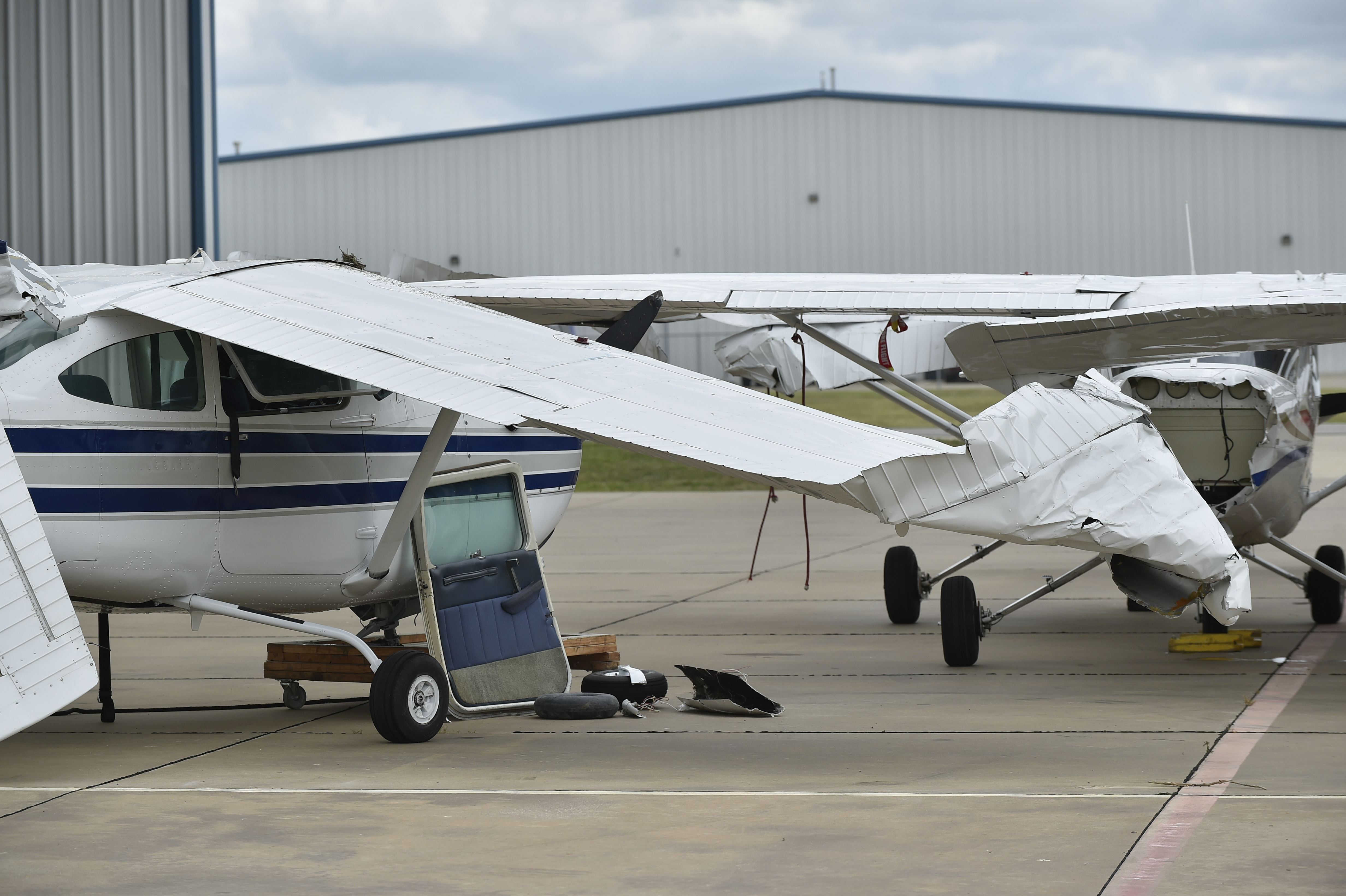 La portavoz del aeropuerto, Lindsey Baker, dijo que entre 12 y 15 avionetas resultaron dañadas, al igual que alrededor de una docena de hangares y otras instalaciones, en el complejo perteneciente al ayuntamiento. Baker no tenía un cálculo inmediato de los estragos.