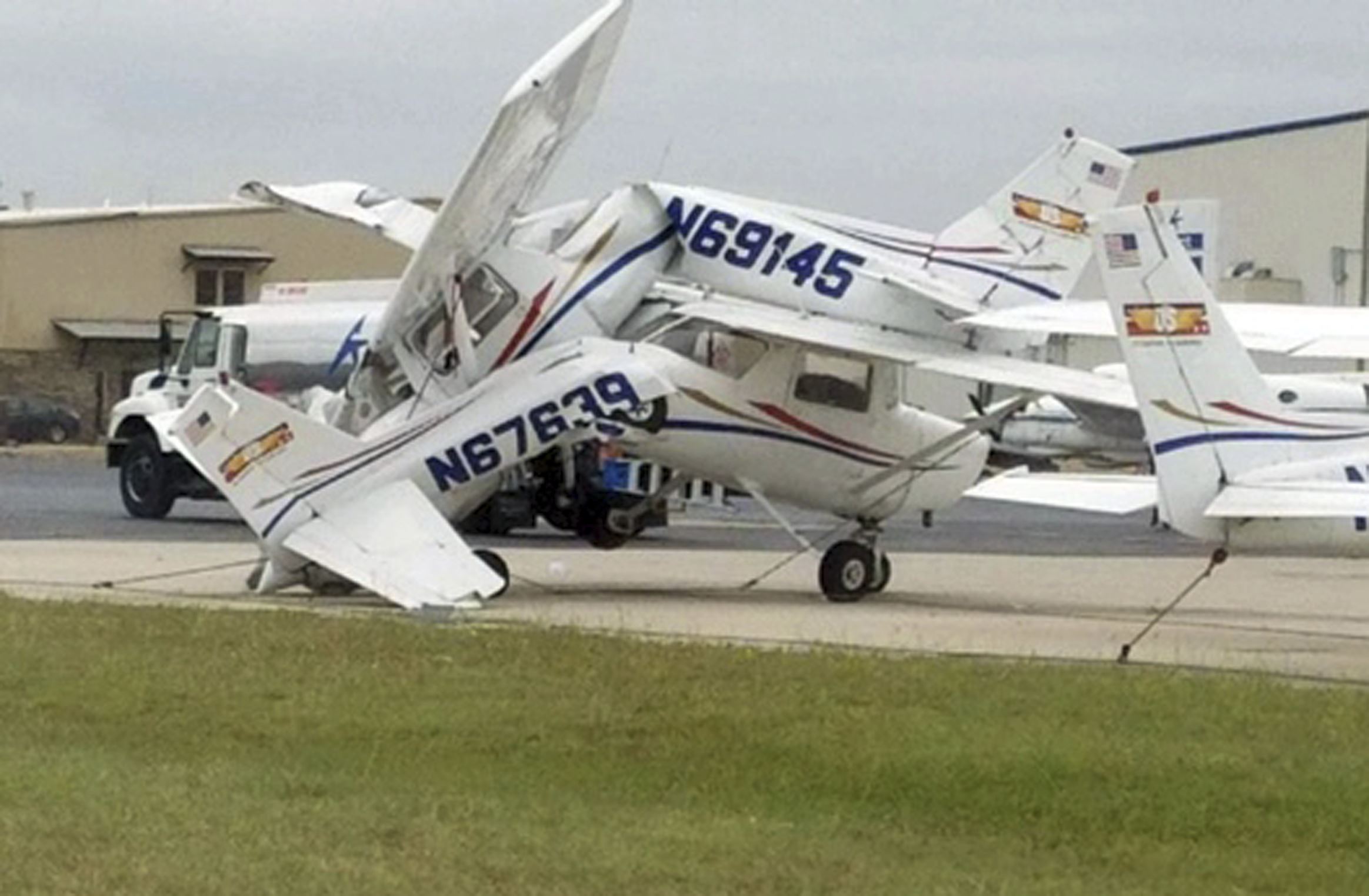 Según la policía de Denton, algunas avionetas estaban apiladas cuando los funcionarios llegaron al Aeropuerto Denton Enterprise para inspeccionar los estragos causados por una tormenta. Nadie resultó herido.