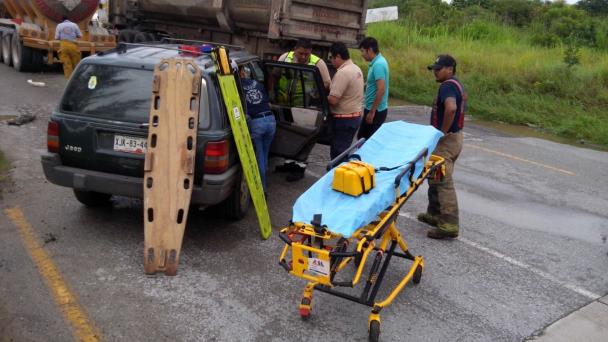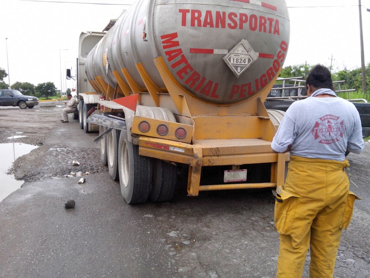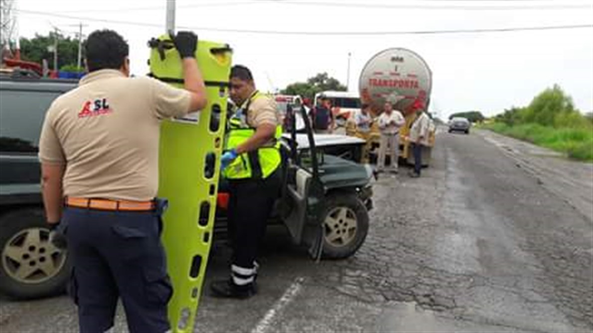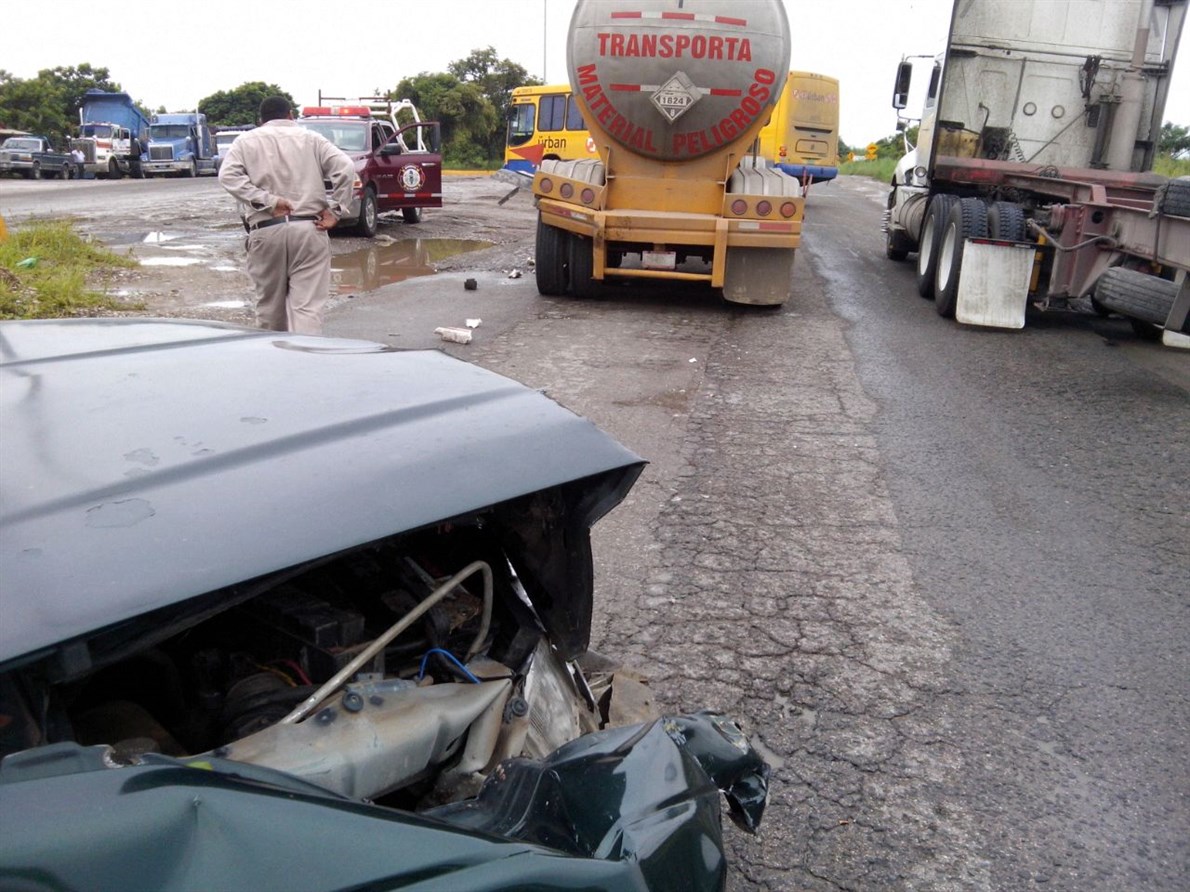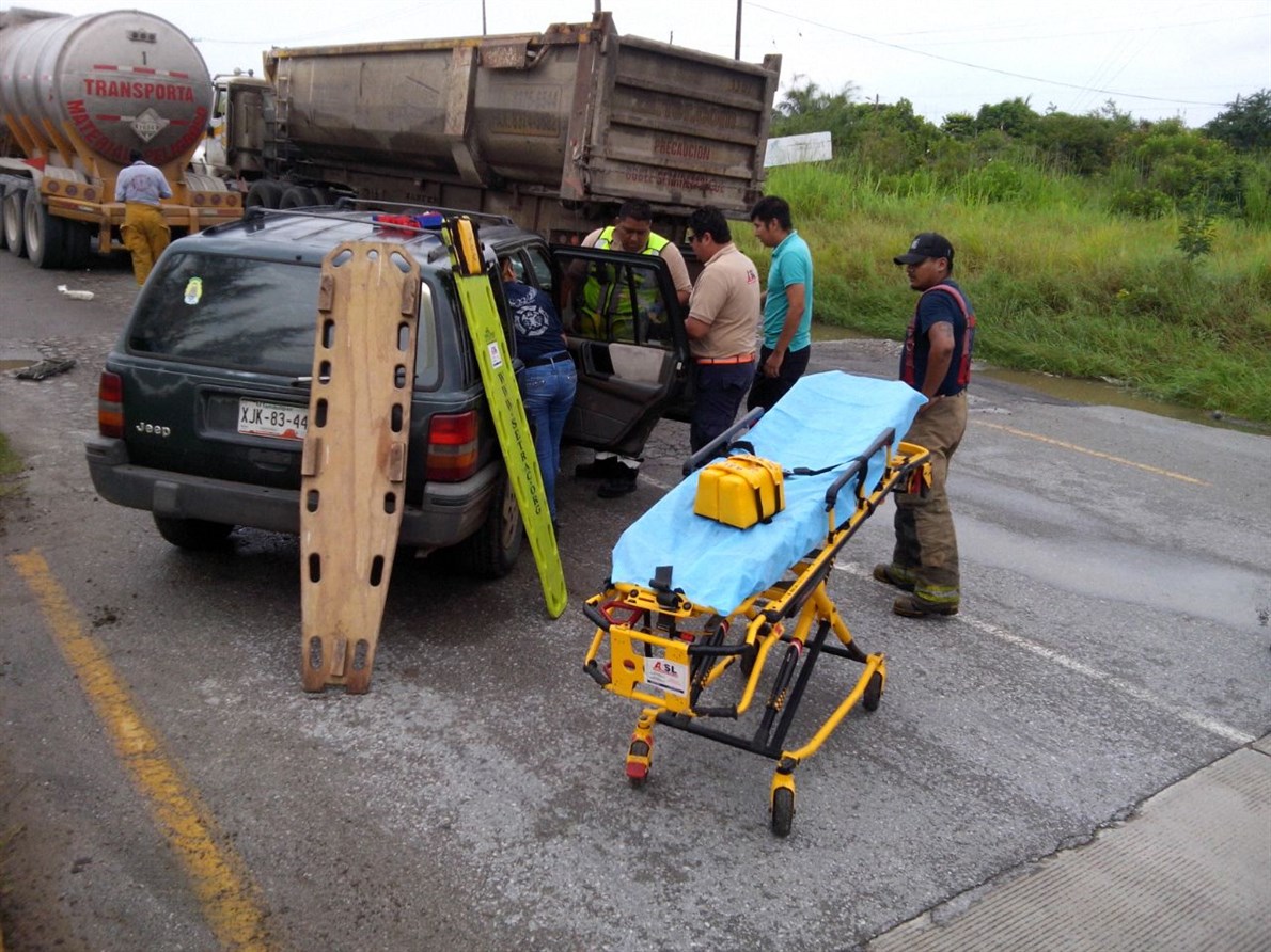 Altamira.- Una mujer herida, fuertes daños materiales y el peligro de derrame de ácido, fue el resultado de un choque por alcance entre una camioneta y una pipa que se dirigía al Puerto de Altamira.