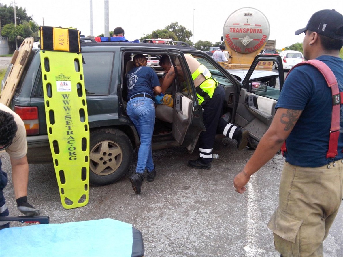 Una vez que se cercioraron de que no existía derrame, los paramédicos de Bomberos y ASL, procedieron a la extracción de la mujer que se encontraba en el asiento del copiloto de la camioneta toda vez que las lesiones producidas le impedían la movilidad.