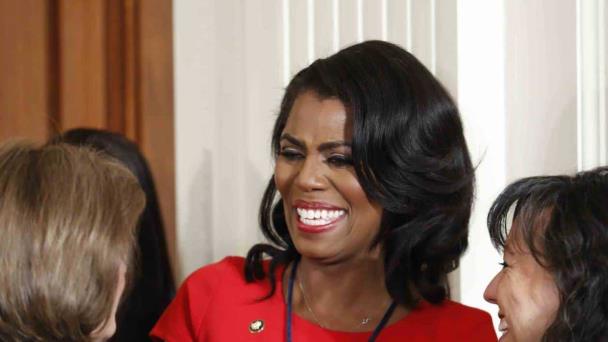 DENUNCIA. Omarosa Manigault-Newman (C), en foto del 14 de febrero de 2017, entonces colaboradora del presidente Donald Trump, hace una serie de denuncias escandalosas sobre la Casa Blanca en su libro Unhinged, de próxima aparición.