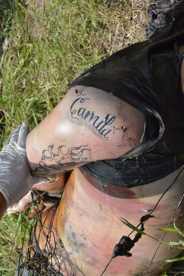 Dijeron que el cadáver tenía varios tatuajes, en el brazo izquierdo el nombre de Adrián Jr. y en el derecho una calavera con unas líneas en forma de llamaradas de lumbre, además el nombre de Camila.