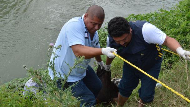 El perito Lucio Hernández Sánchez, apoyado por el titular de la unidad de criminología Pedro Sosa López, llevaron el cadáver a la superficie, lo analizaron y le tomaron fotografías en presencia del fiscal en turno Jorge Carlos Sánchez Fernández, quien dio fe del deceso y ordenó el levantamiento de datos y evidencias.
