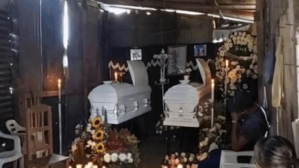 En tanto, en una humilde casa construida con láminas de zinc y tablones de madera, docenas de personas rinden tributo a las víctimas que yacen en féretros en color blanco.