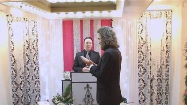 Se dirigió a una de las famosas capillas de la ciudad donde planteó la idea a los dueños, quienes después de entender que no era una broma, aceptaron realizar la ceremonia a pesar de lo extraña de la situación.