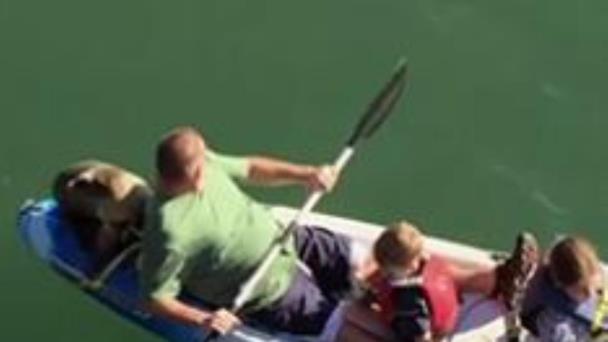 Mientras una familia navegaba plácidamente en un kayak, un inesperado pasajero abordó la embarcación.