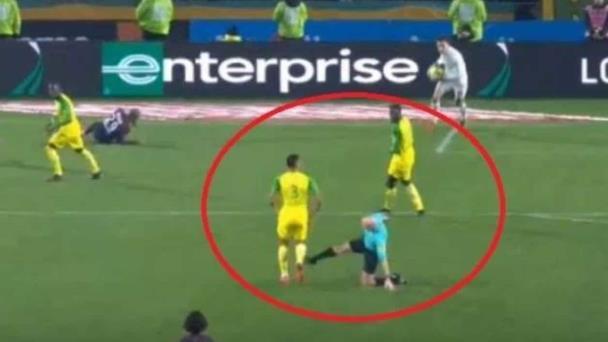 En el vídeo de los últimos minutos del partido de ayer, domingo, se observa cómo el jugador brasileño del Nantes Diego Carlos hace caer involuntariamente a Chapron, quien todavía tendido en el césped le propinó la ya famosa patada.