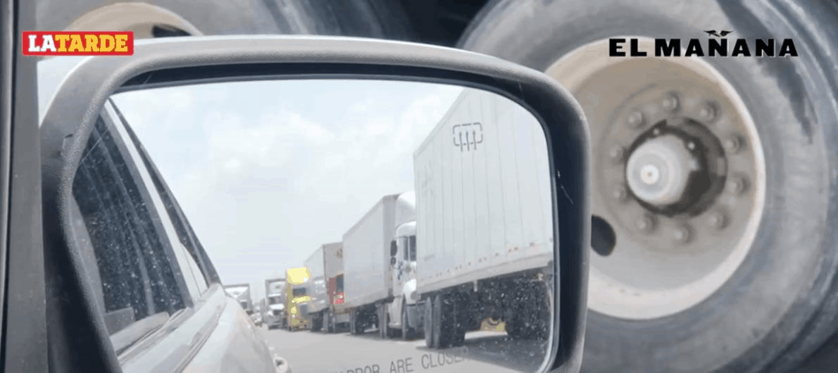 Forman tráilers largas filas en puente Reynosa-Pharr