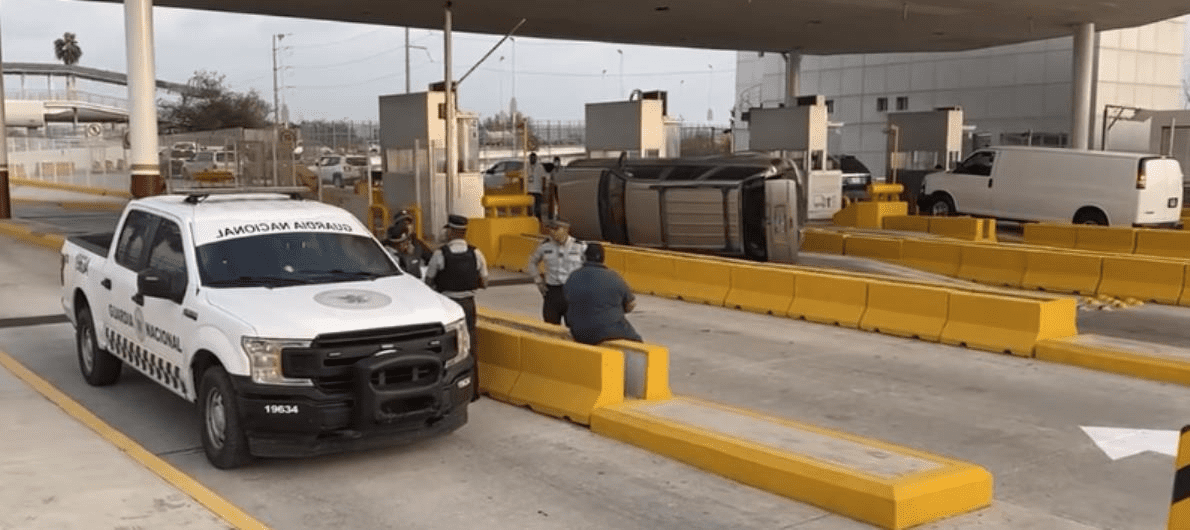 Un residente del extranjero impactó una camioneta contra una de las casetas de cobro y volcó en el puente Internacional Reynosa-Hidalgo, en #Reynosa.