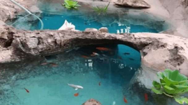 Posteriormente, decoraron su estanque con plantas acuáticas y trajeron decenas de peces diminutos para que nadaran en este paraíso recién hecho. El resultado final recuerda a los característicos cenotes del estado de Yucatán.