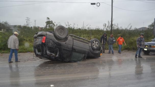 Según el conductor quien fue identificado como David Tamayo Vázquez, de 33 años, quien vive en Las Fuentes Sección Lomas, terminó volcado luego de perder el control del volante, esto al pasar por un charco de agua, cuando circulaba de oriente a poniente por dicha arteria.