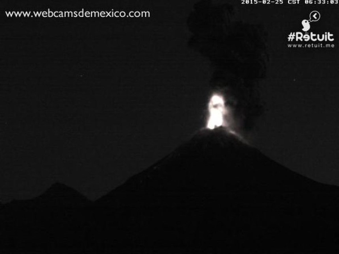 El Centro Nacional de Prevención de Desastres (Cenapred) informó que el volcán Popocatépetl emitió la noche de este martes ceniza y fragmentos incandescentes sobre el cráter.