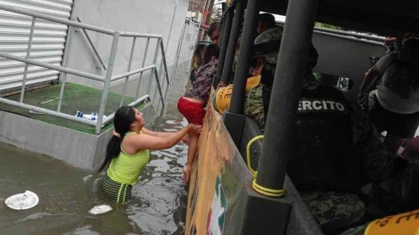 Familias damnificadas fueron auxiliadas y trasladadas a refugio seguro durante las torrenciales lluvias que provocaron inundaciones severas en más de 50 colonias.
