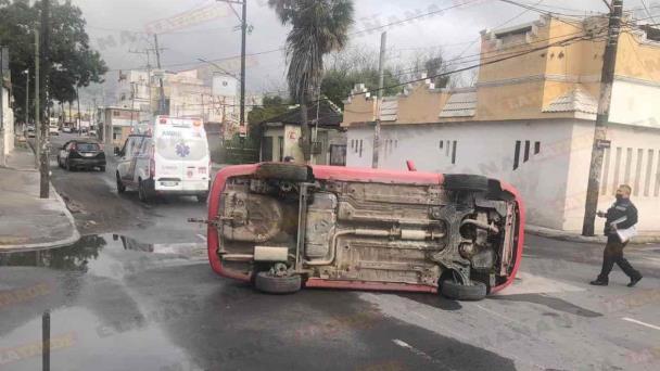 Un conductor resultó lesionado luego de volcar la unidad que conducía por la calle Aldama en la Zona Centro.