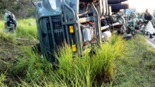 El percance se registró a las 06:56 horas en el kilómetro 63 de la carretera Matamoros-Puerto Juárez, tramo Estación Manuel-El Sombrerito de Aldama. En ese punto un camión del Ejército con 35 soldados a bordo se salió de la carpeta asfáltica y se volcó sobre uno de sus costados, ocasionando lesiones menores a 12 de los militares.