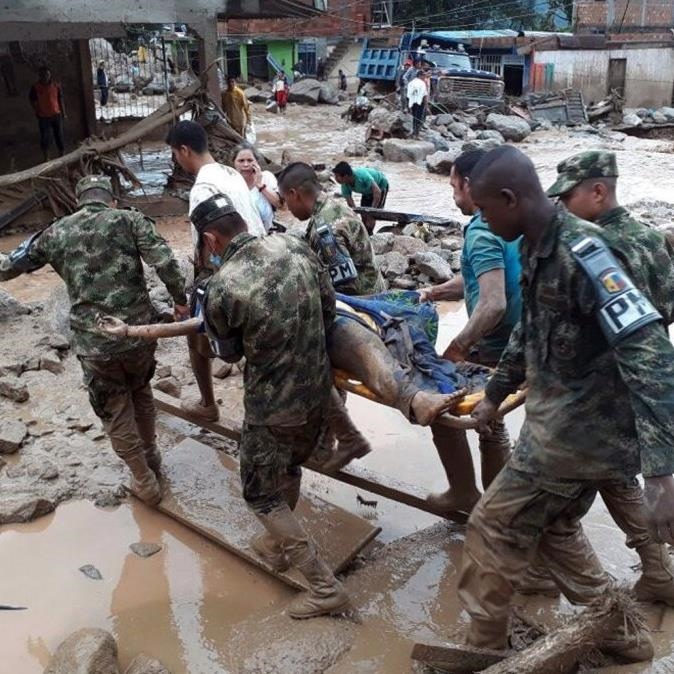 "Toda nuestra solidaridad y apoyo al pueblo de Colombia, y al presidente Juan Manuel Santos le ofrezco toda la solidaridad de equipos de rescatistas, especialistas en tragedia y todo el apoyo de pueblos", dijo el presidente venezolano, Nicolás Maduro. Perú, España, Panamá, Francia y Brasil también se solidarizaron con las víctimas.