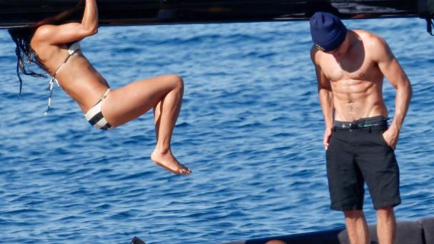 La pareja fue captada besándose a bordo de un yate durante sus vacaciones en Sardinia, Italia.